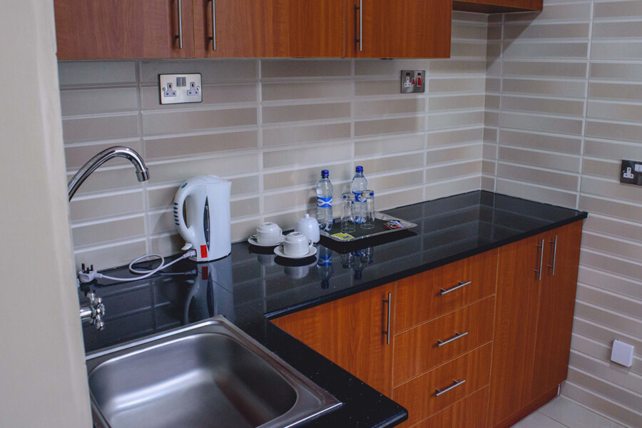 Our apartments are configured to include a sleeping area with a King-Sized bed with comfortable pillow top mattresses and premium bedding. The living area includes a micro-kitchenette with a fridge, microwave, sink, and large HD TV’s.